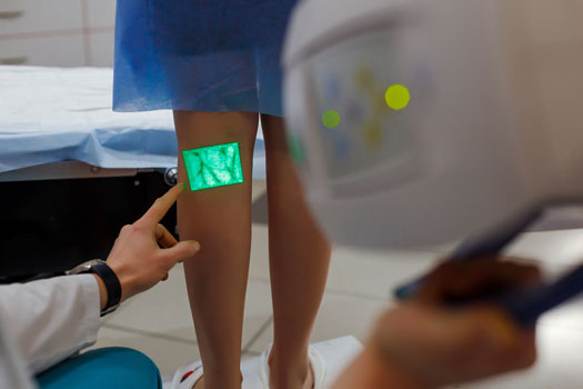 A tecnologia que cria um mapa dos vazinhos na perna e consegue mostrar as veias que não são visíveis diretamente pelo olho humano.